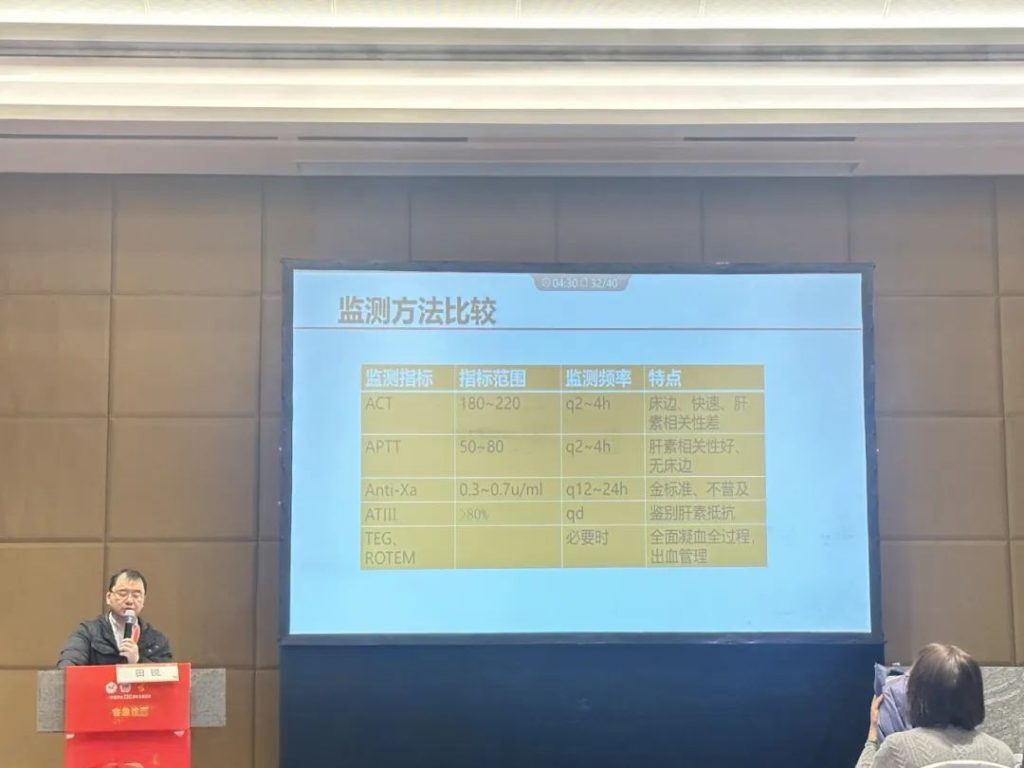 其中,抗凝是ECMO治疗过程中的关键指标。专家们通过分享前沿的抗凝相关研究,并针对不同时期的抗凝管理要求进行经验分享。规范化的抗凝监测对于降低ECMO实施过程中血栓形成和溶血的风险具有重要意义。